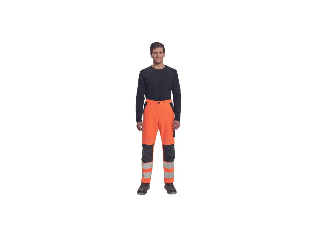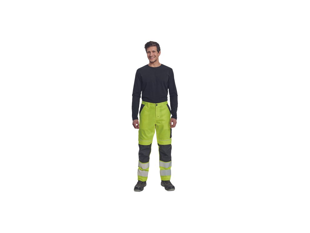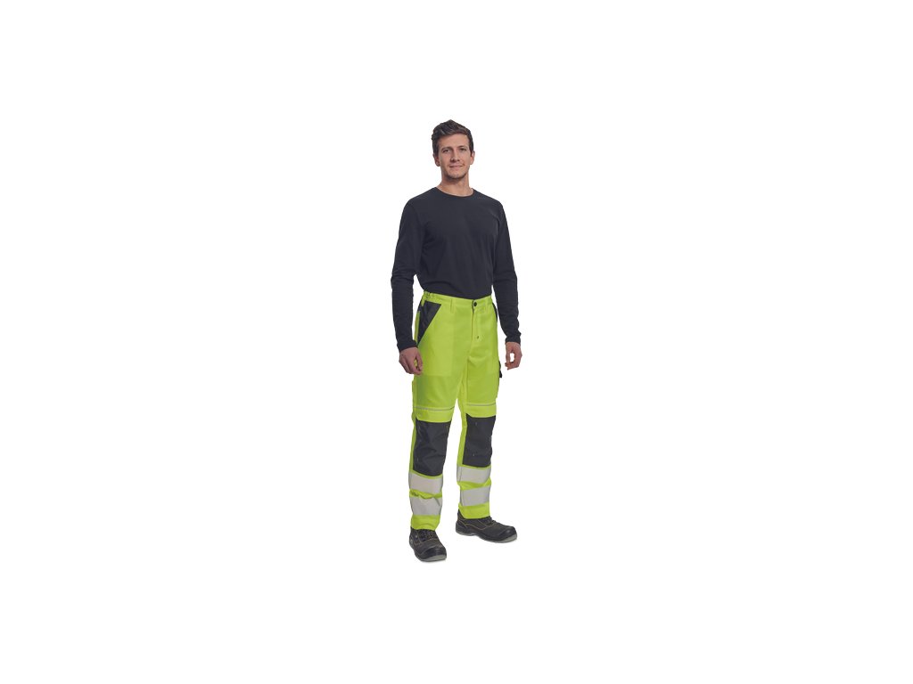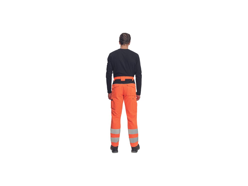 • pánské HI-VIS pracovní kalhoty s elastickým pasem • 2 přední kapsy • 1 levá zdvojená stehenní kapsa • 2 zadní kapsy • 2 menší zadní kapsičky na pravém stehnu • dvojice tištěných 7.5 cm reflexních pruhů na spodní části nohavic, reflexní paspulky • Oxford 600D zesílení kolen s možností horního vkládání nákoleníků • možnost prodloužení nohavic