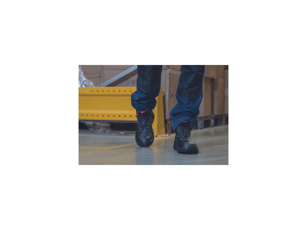 • bezpečnostní kotníková obuv s kovovou tužinkou i stélkou odolnou propíchnutí • antistatickou a protiskluzovou PU/PU podešví odolnou pohonným hmotám • absorpcí energie v patě • svršek z prodyšné kůže