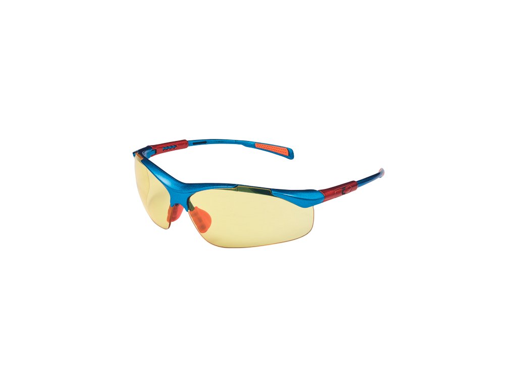 brýle sportovního vzhledu optické třídy 1 s polykarbonátovým zorníkem s úpravou proti poškrábání a orosení (třída F dle normy EN 166), ochranou proti nárazu s malou energií a nastavitelnou délkou stranic.; žlutý zorník má ochranný filtr proti UV záření dle normy EN 170; šedý a zrcadlový zorník má ochranný protisluneční filtr dle normy EN 172
