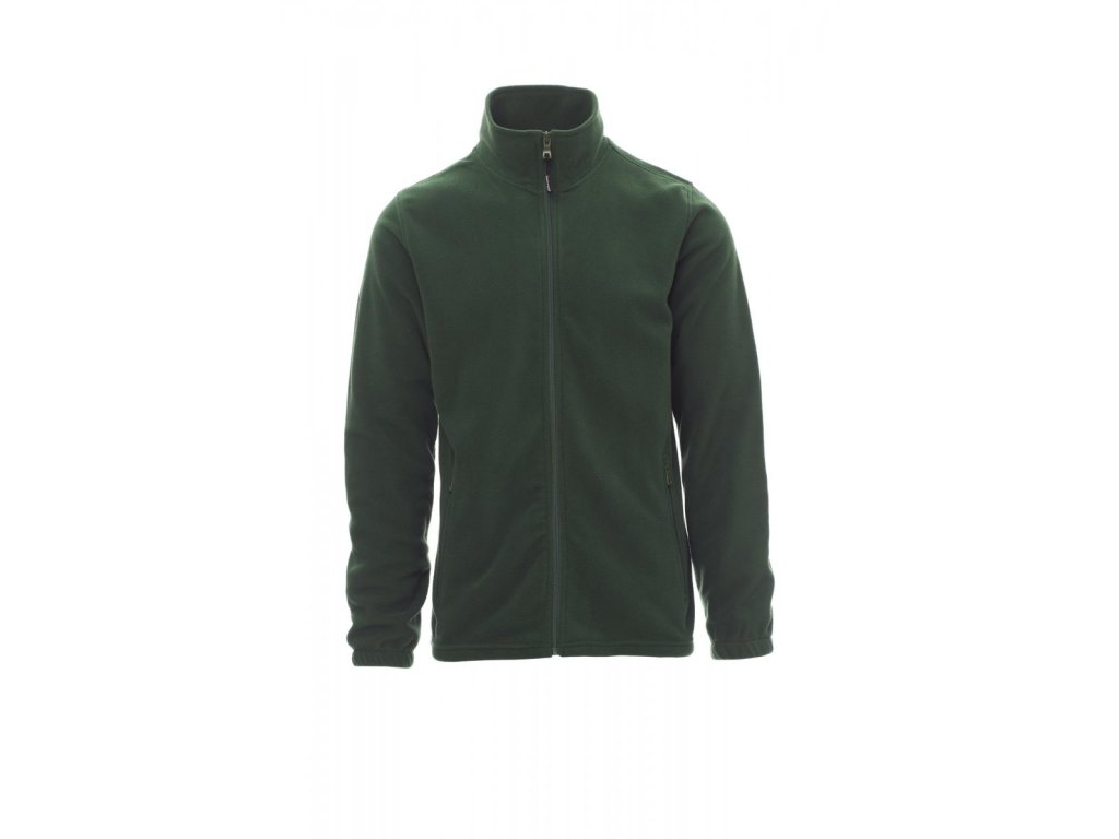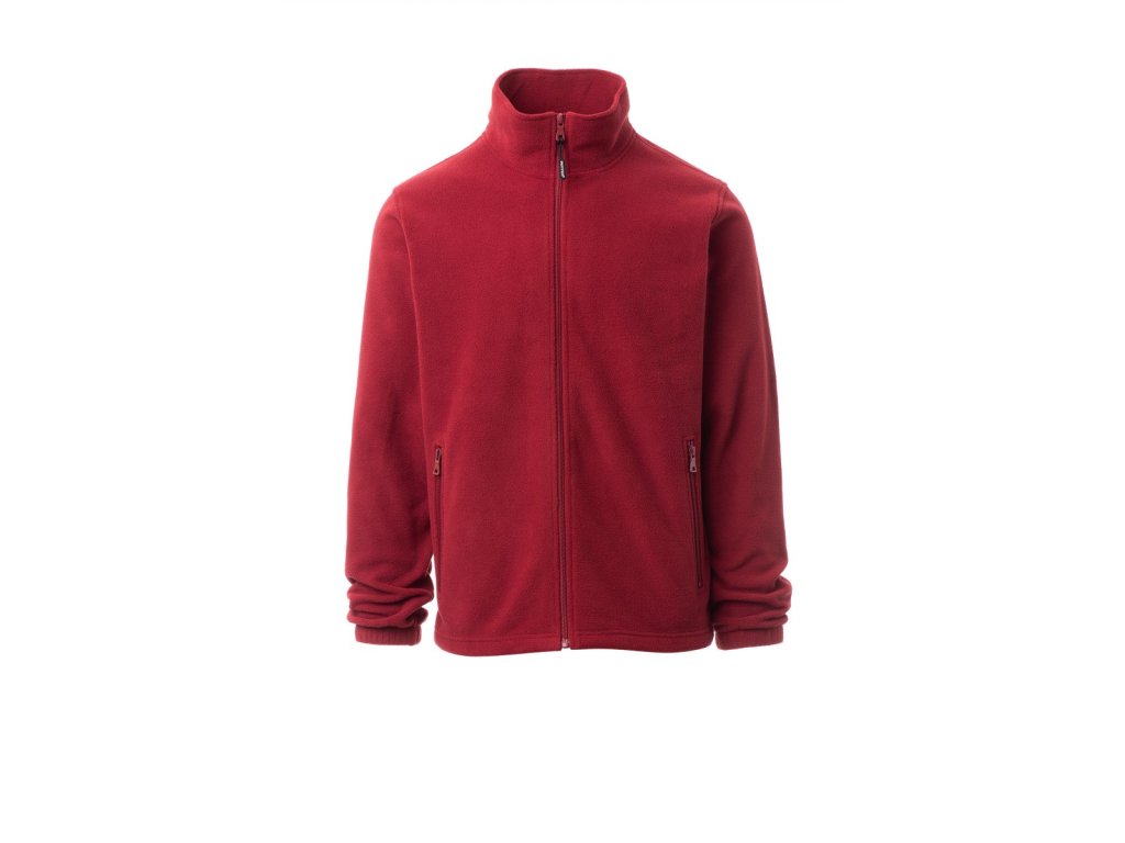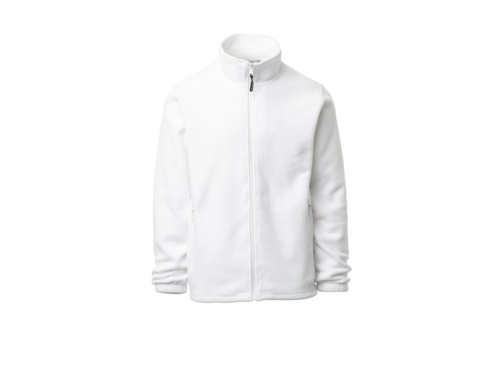 Flísová bunda s nylonovým celozipem s jedním jezdcem, všívané rukávy, elastické manžety, dvě kapsy se skrytým zipem, zesílené švy, rovná záda.