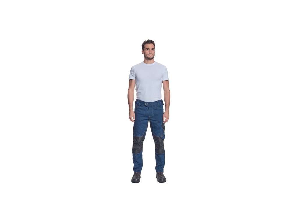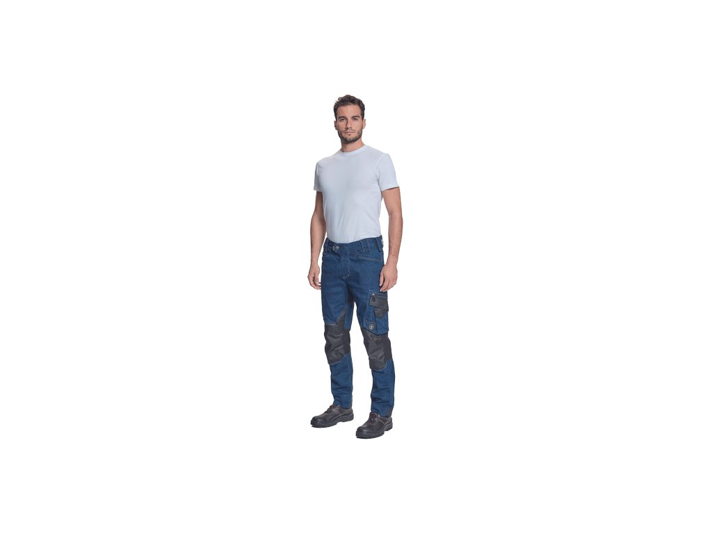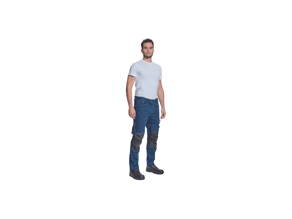 • pánské pracovní kalhoty • elastická předepraná Denim látka • odolné trojité prošití nohavic a sedu • CORDURA® a TRIFIBETEX® zesílení v oblasti kolen a sedu • prostorné multifunkční přední kapsy s poutky na nářadí • nastavitelná délka nohavic