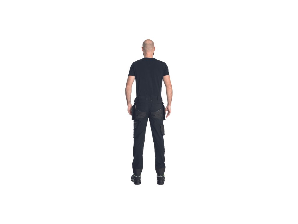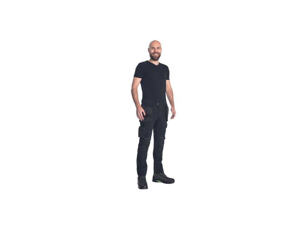 • pánské pracovní kalhoty s pružným pasem doplněné o 2 odepínatelné, multifunkční "létající" kapsy • 2 zadní kapsy se zapínáním na suchý zip • 2 multifunkční stehenní kapsy • elastický inovativní materiál TRIFIBETEX PRO® • odolné trojité prošití nohavic a sedu • CORDURA® zesílení v oblasti kolen s možností vkládání kolenních výztuh • reflexní prvky v barevném odstínu • nastavitelná délka nohavic