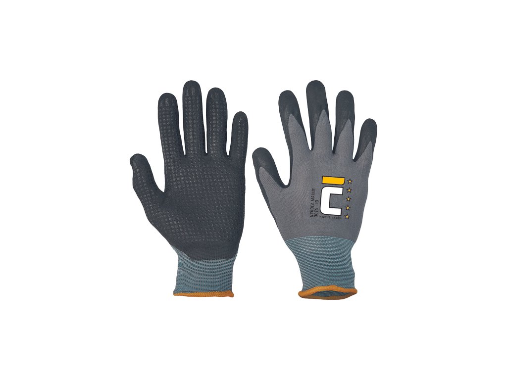 • rukavice z úpletu nylon/lycra máčené mikroporézním nitrilu • nitrilové terčíky na dlani a prstech • excelentní prodyšnost • velmi dobrý úchop za mokra, v olejnatém prostředí i za sucha