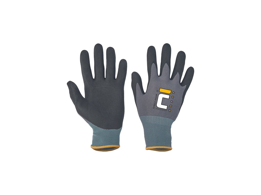 • rukavice z úpletu nylon/lycra máčené v mikroporézním nitrilu • excelentní prodyšnost • velmi dobrý úchop za mokra, v olejnatém prostředí i za sucha