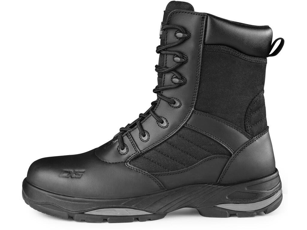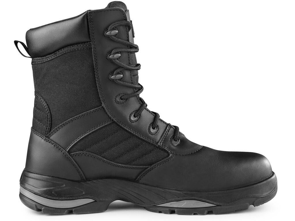 Poloholeňová bezpečnostní obuv, kombinovaná, s kompozitovou špicí a protipropichovou textilní planžetou Dyna-Flex. Materiál: svršek z 1,6–1,8 mm hovězí lícové kůže a hydrofobní textilie Oxford, podšívka z prodyšné mesh textilie, vyjímatelná stélka z