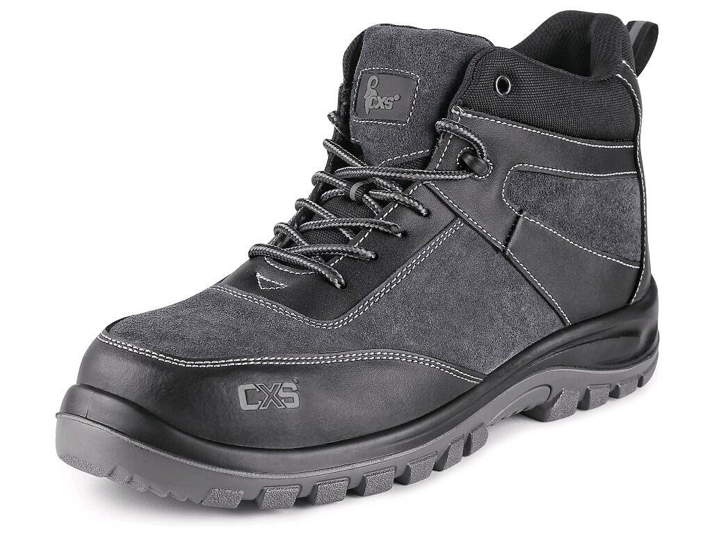 Kotníková pracovní obuv, kožená, s reflexními doplňky. Materiál: svršek z 1,4 - 1,6 mm broušené kůže kombinované s 1,6 - 1,8 mm hladkou štípenkou s PU filmem, polstrovaný textilní límec, prodyšná a oděru odolná mesh podšívka, vyjímatelná, pohodlná a