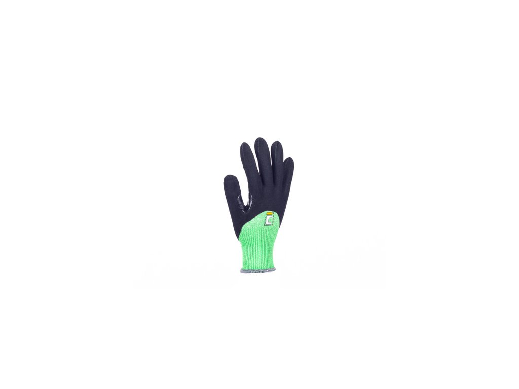• pletené bezešvé rukavice se 3/4 máčením v mikroporézním nitrilu • ochrana vůči řezu F • zesílení v oblasti mezi palcem a ukazováčkem pro delší životnost rukavice • vhodné pro manipulaci s ostrými a mastnými díly, manipulace se sklem nebo opracování mastných kovů a plechů