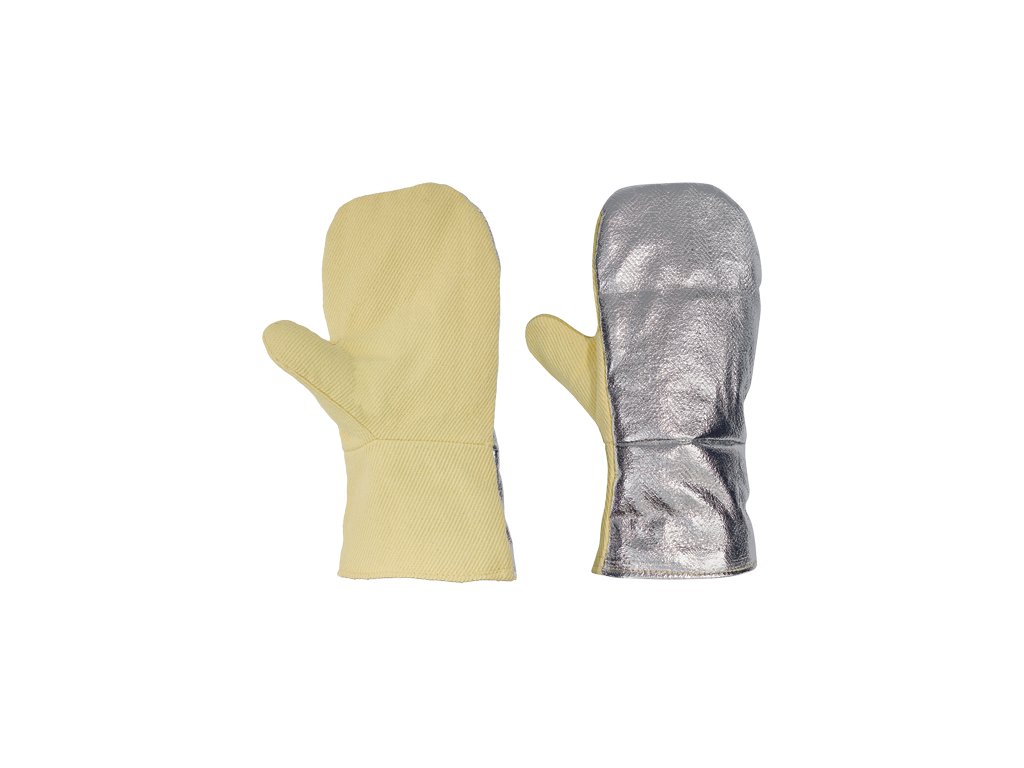 • palcové dvouvrstvé rukavice z materiálu aramid (600 g/m2) • s pohliníkovaným hřbetem • ochranou před sálavým teplem, taveninou a kontaktním teplem do 350 °C • krátkodobě i do 500 °C
