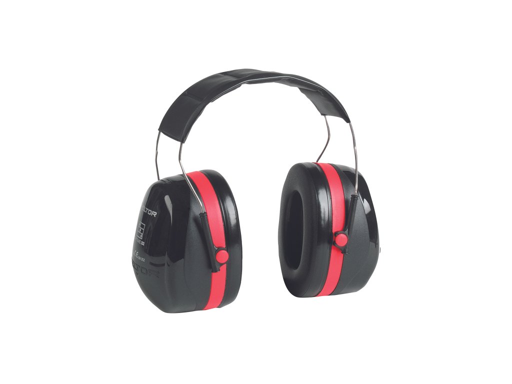 vysoce výkonné mušlové chrániče sluchu s hlavovým obloukem a pěnou plněnými těsnícími polštářky; dvojitá stěna mušlí tlumí výborně v celém rozsahu frekvencí