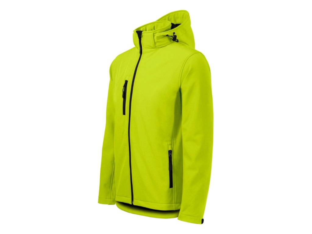 3vrstvý softshell s membránou, celopropínací reverzní spirálový zip s krytkou brady, odnímatelná kapuce, lemy rukávů nastavitelné suchým zipem, dolní lem na stažení elastickou šňůrkou, kapsy s reverzním spirálovým zipem, náprsní kapsa, vnitřní náprsní kapsa na zip se vstupem pro branding, tvarovaný a mírně prodloužený zadní díl, kontrastní prvky (vyjma barvy 01), vnitřní fleece s antipilingovou úpravou, Údržbové informace pro softshellový materiál