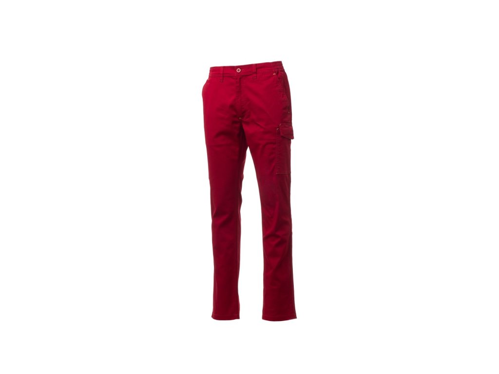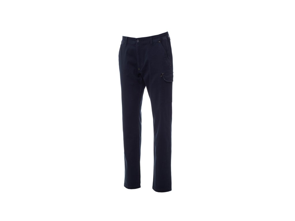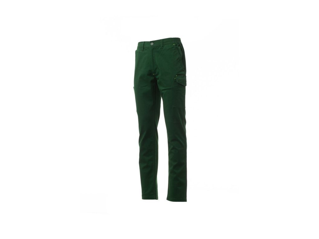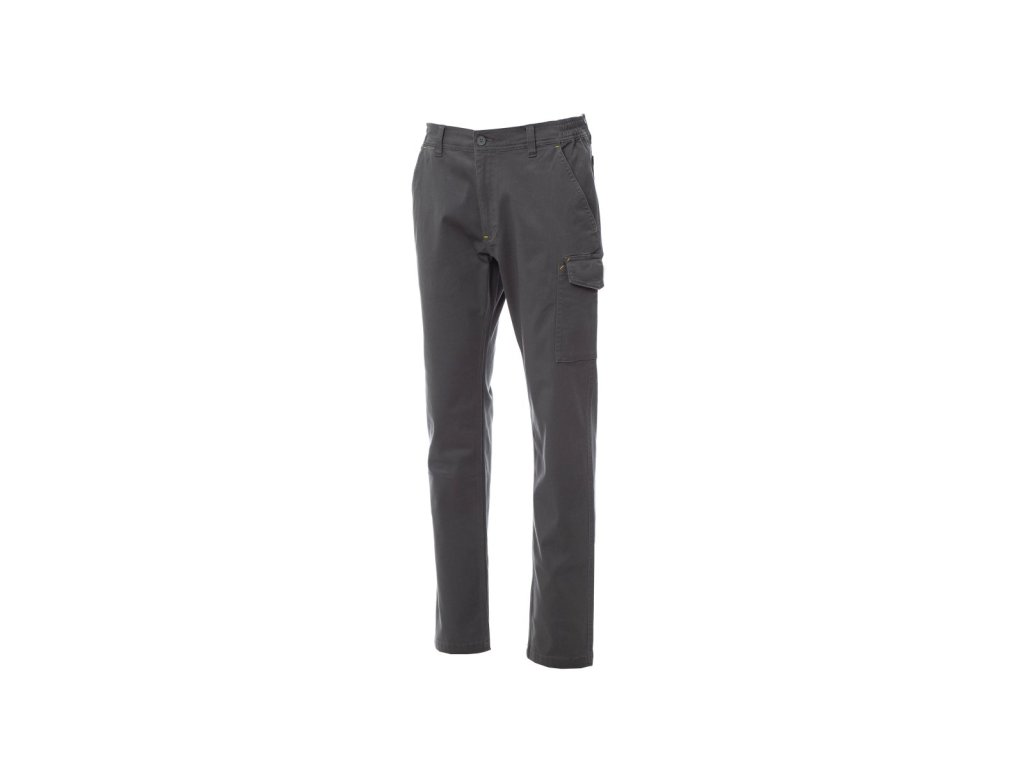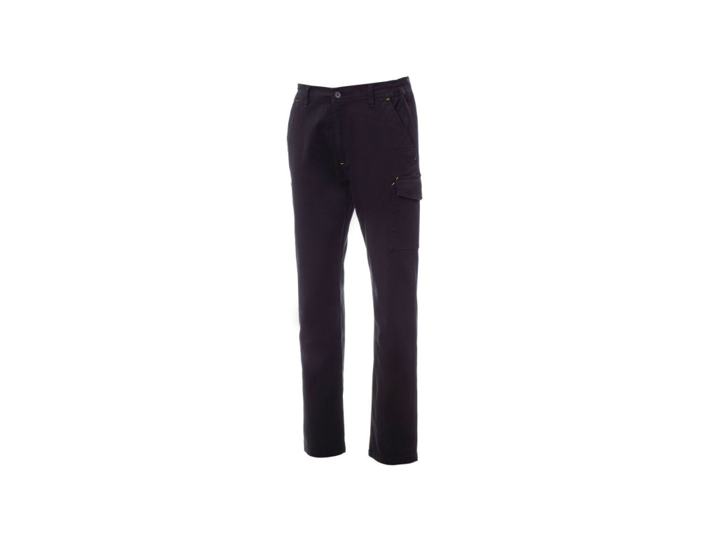 Kalhoty s poutky a elastickým páskem v pase, zapínání na zip a knoflík. Dvě přední kapsy klasického střihu, kapsička na mince, pravá postranní kapsa na svinovací metr, levá postranní kapsa s uzavírací klopou LOCK SYSTEM, dvě zadní kapsy, z nichž jedna s klopou na suchý zip. Prošití trojjehlou.