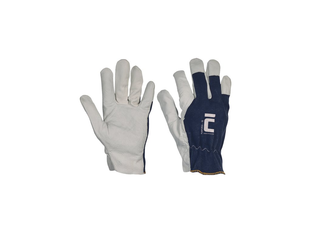 • šité rukavice z jemné kozinky v dlani • bavlněný úplet na hřbetu ruky • konce prstů kryté kůží
