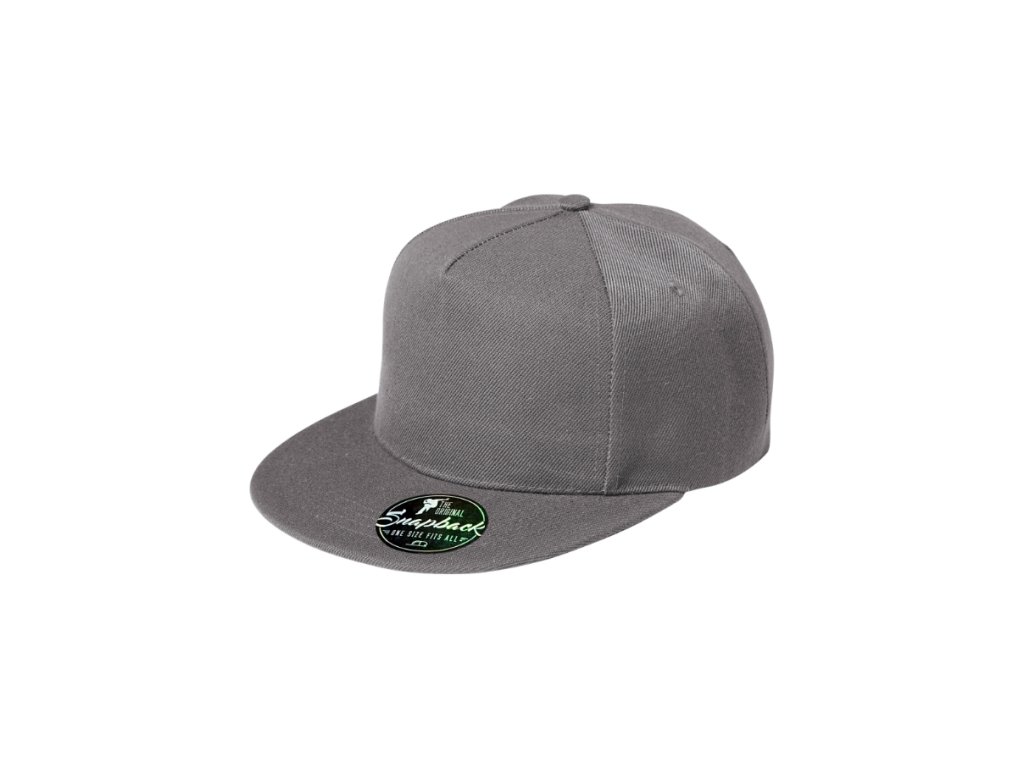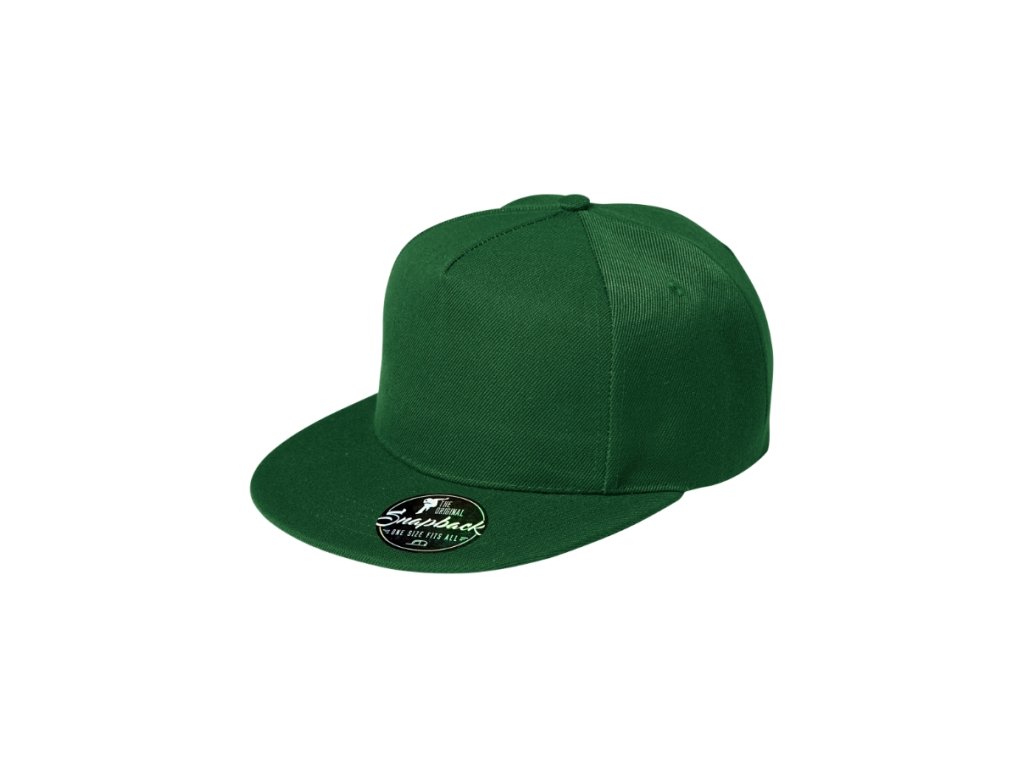 pětipanelový střih, vyztužený přední panel, prošívaný plochý kšilt, obšité větrací otvory, potící páska, velikost nastavitelná plastovými patentky, odnímatelná nálepka na kšiltu