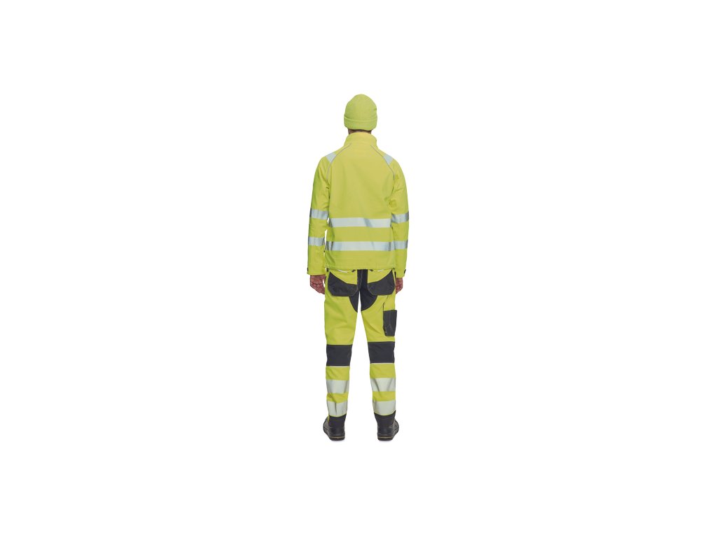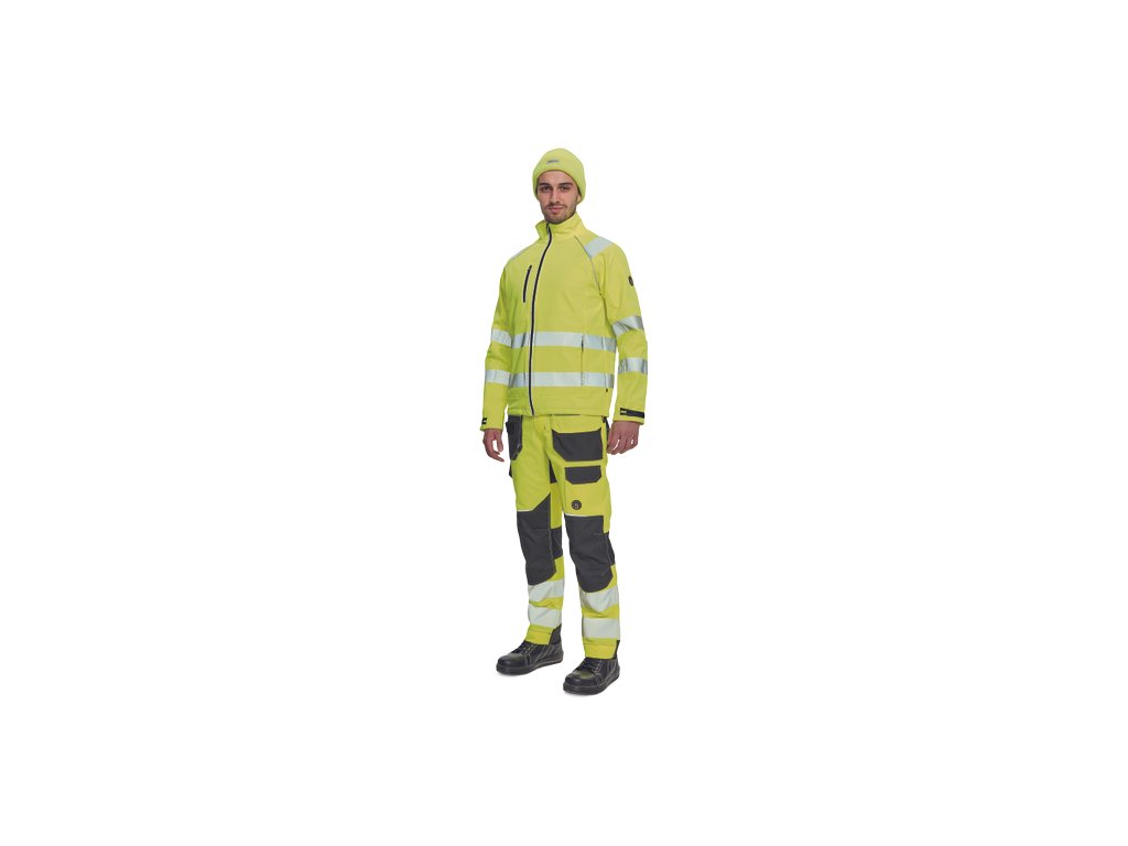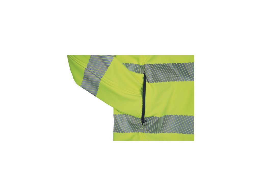 • pánská softshellová HI-VIS bunda s membránou a vnitřním fleecovou vrstvou • zapínaní na zip • 1 náprsní kapsa, 2 boční kapsy na zip • 3 multifunkční vnitřní kapsy • nastavitelná šíře manžet rukávů pomocí suchého zipu • tištěné reflexní segmentované 5 cm pruhy okolo pasu, rukávů a přes ramena