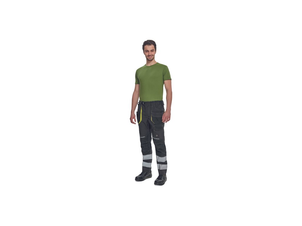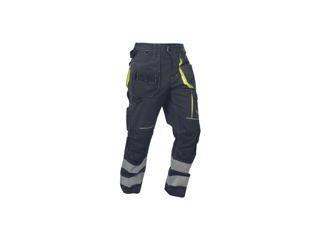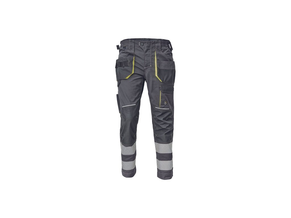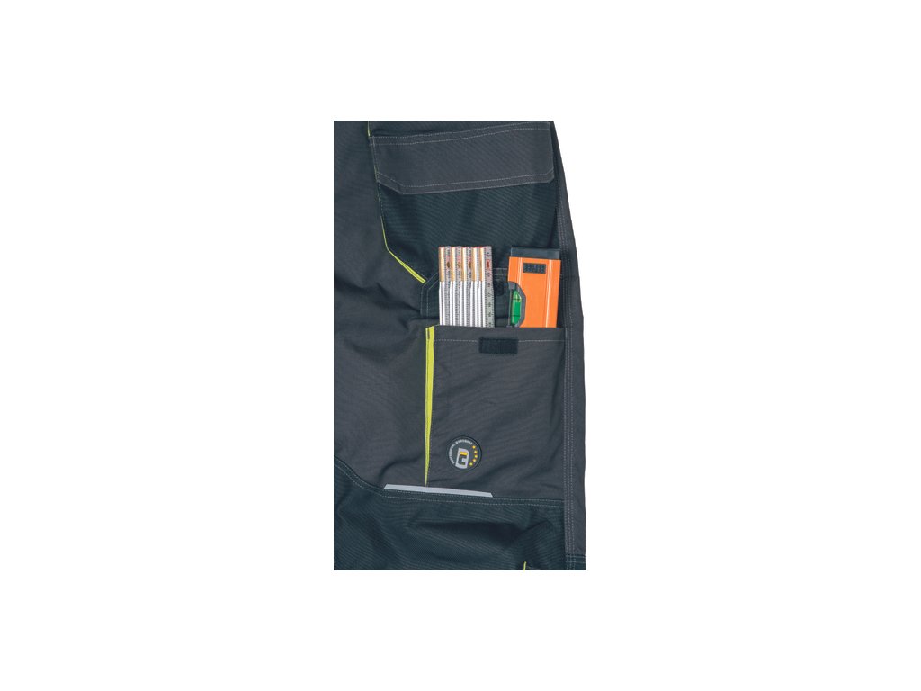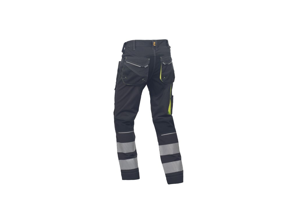 • pánské pracovní kalhoty s pružným pasem a multifunkčními kapsami • Oxford 600D zesílení kolenních kapes pro vkládání ochranných nákoleníků • odolné trojité prošití nohavic a sedu • 2 tištěné reflexní segmentované 7 cm pruhy na spodní části nohavic • nastavitelná délka nohavic