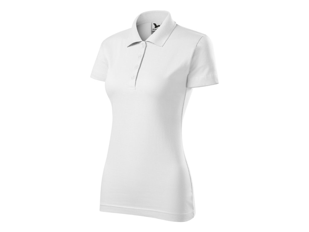 lehce vypasovaný střih s bočními švy, límeček z žebrového úpletu 1:1, úzká léga s 4 knoflíčky v barvě materiálu, vnitřní průkrčník začištěn páskou z vrchového materiálu, zpevnění ramenních švů páskou, silikonová úprava