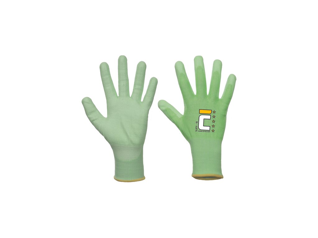 • pletené bezešvé rukavice z jemného 18GG úpletu s vrstvou bílého PU v dlani a prstesch s ochranou vůči řezu D • rukavice splňuje Oeko-Tex • vhodné pro dotykové obrazovky