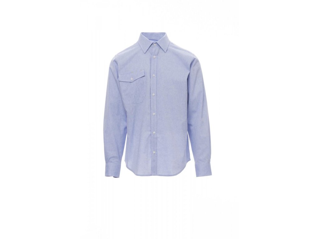 Pánská košile, mírně vyštíhlená, italský límeček, oboustranně prošitá léga s bílým perleťovým knoflíkem, tvarované manžety s 2 knoflíky a knoflíkovou dírkou. Zadní strana: zádové sedlo a svislé záševky, technická kapsa na hrudi s klopou na knoflík a dvě očka na tužku.