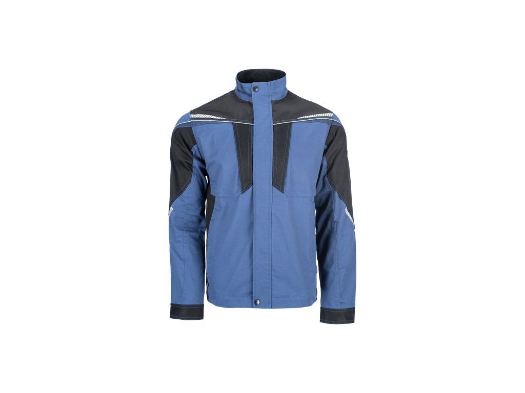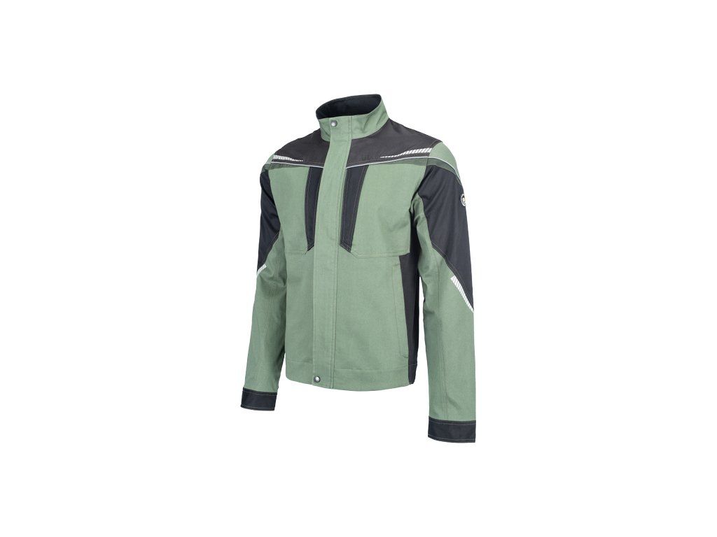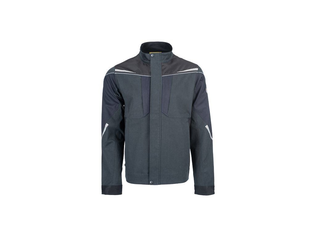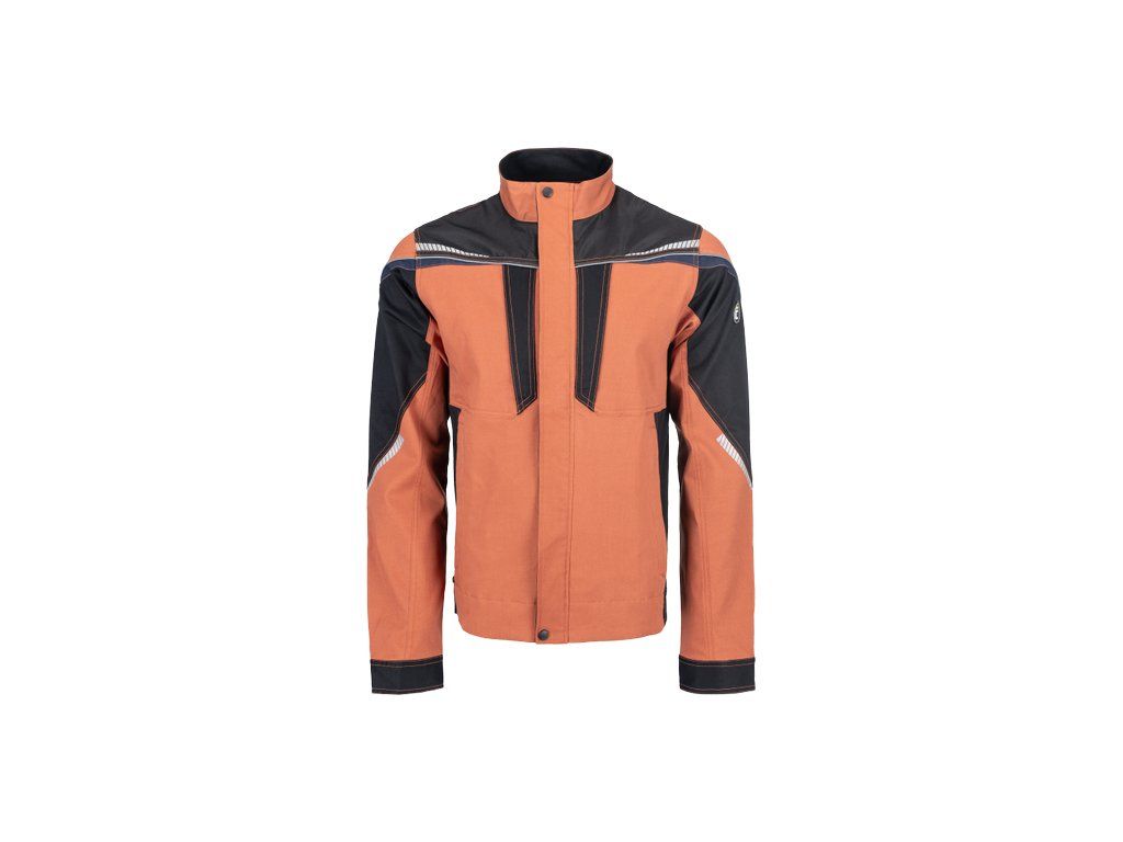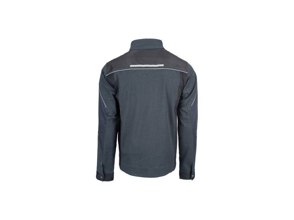 • pánská pracovní bunda se zapínáním na zip • vyrobena ze strečové tkaniny • 2 boční kapsy, 2 náprsní kapsy na zip • vyztužení namáhaných částí • reflexní lemování a tištěné reflexní detaily