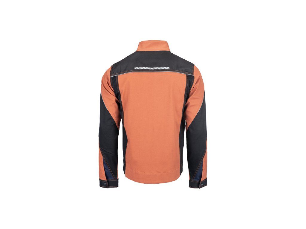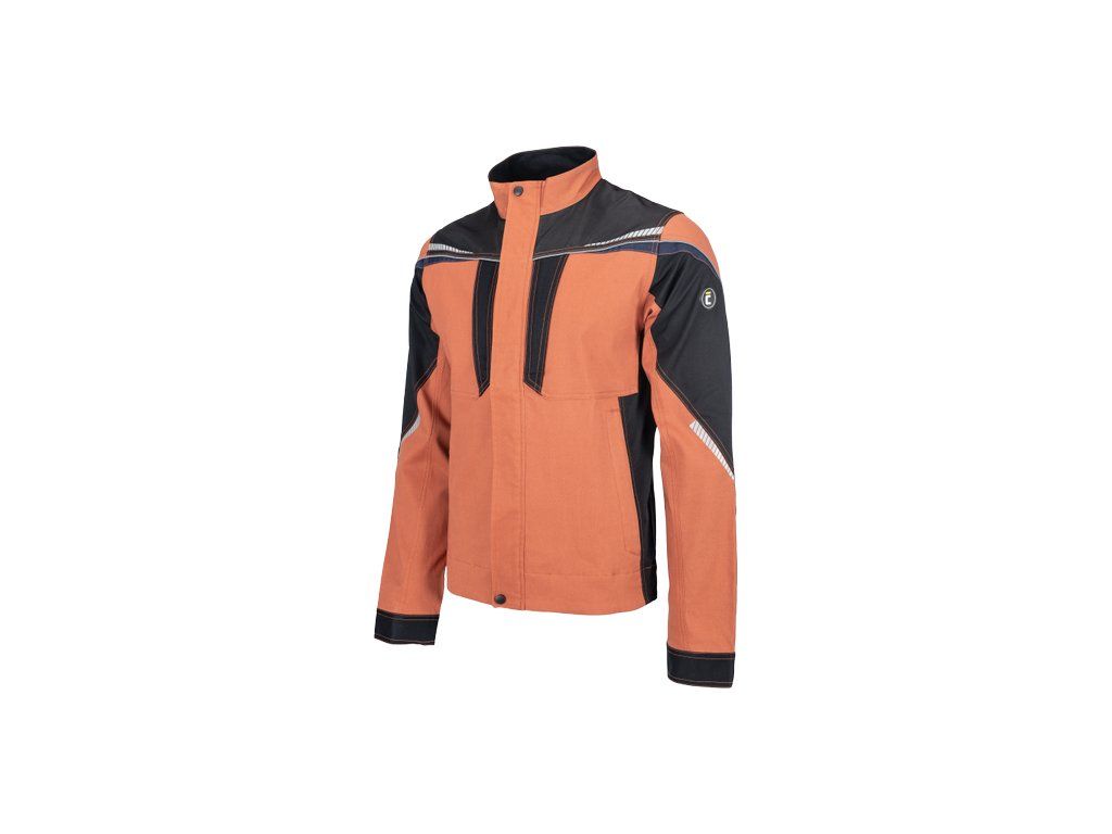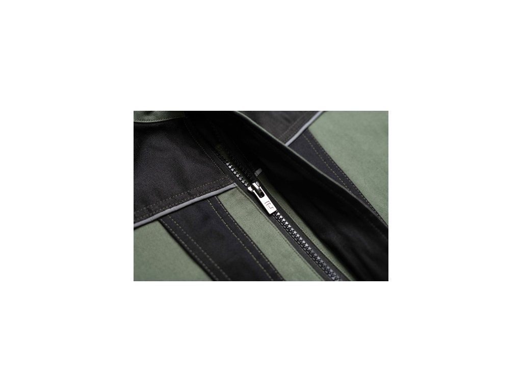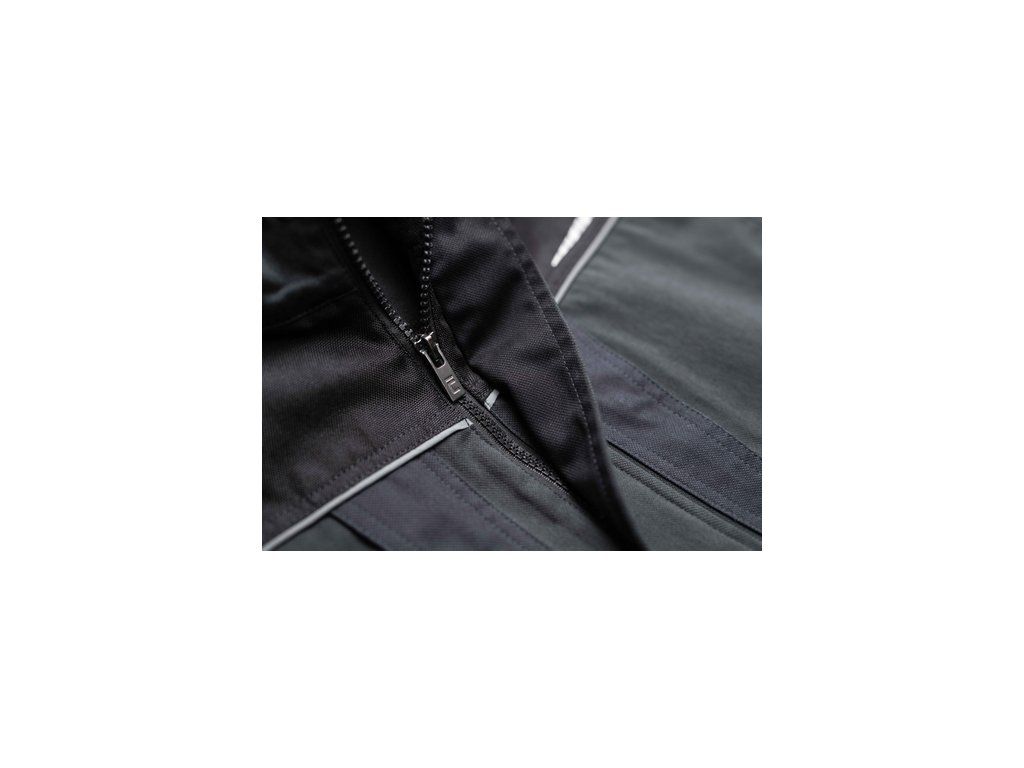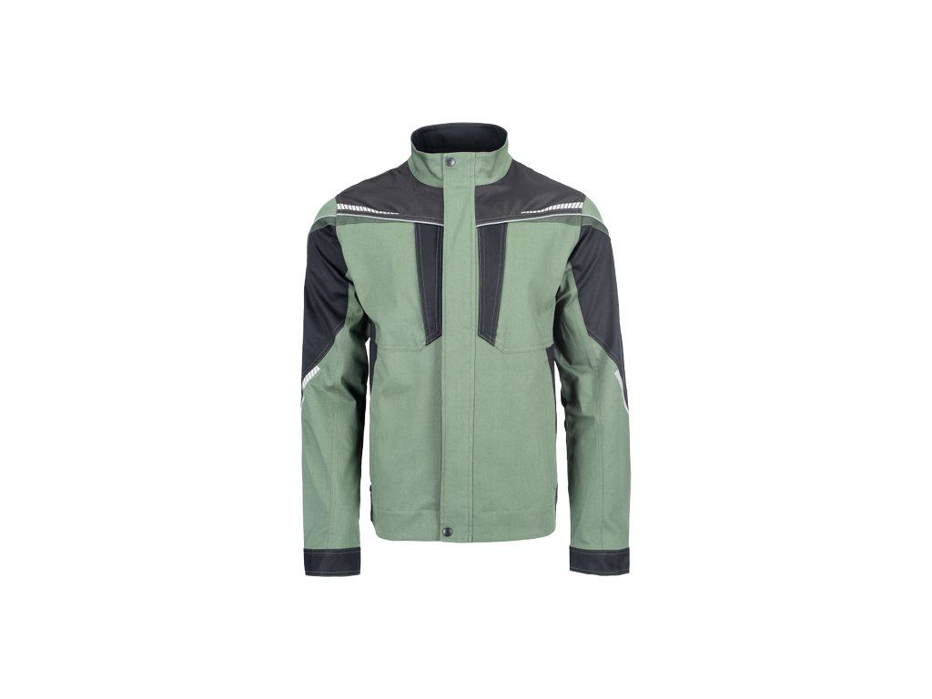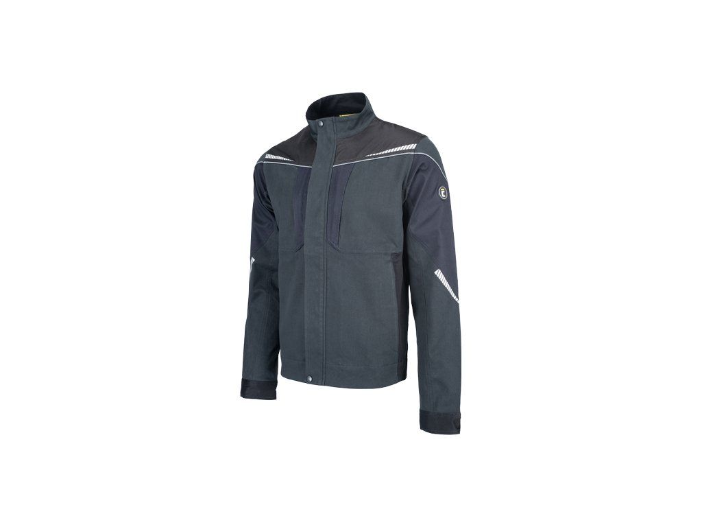 • pánská pracovní bunda se zapínáním na zip • vyrobena ze strečové tkaniny • 2 boční kapsy, 2 náprsní kapsy na zip • vyztužení namáhaných částí • reflexní lemování a tištěné reflexní detaily