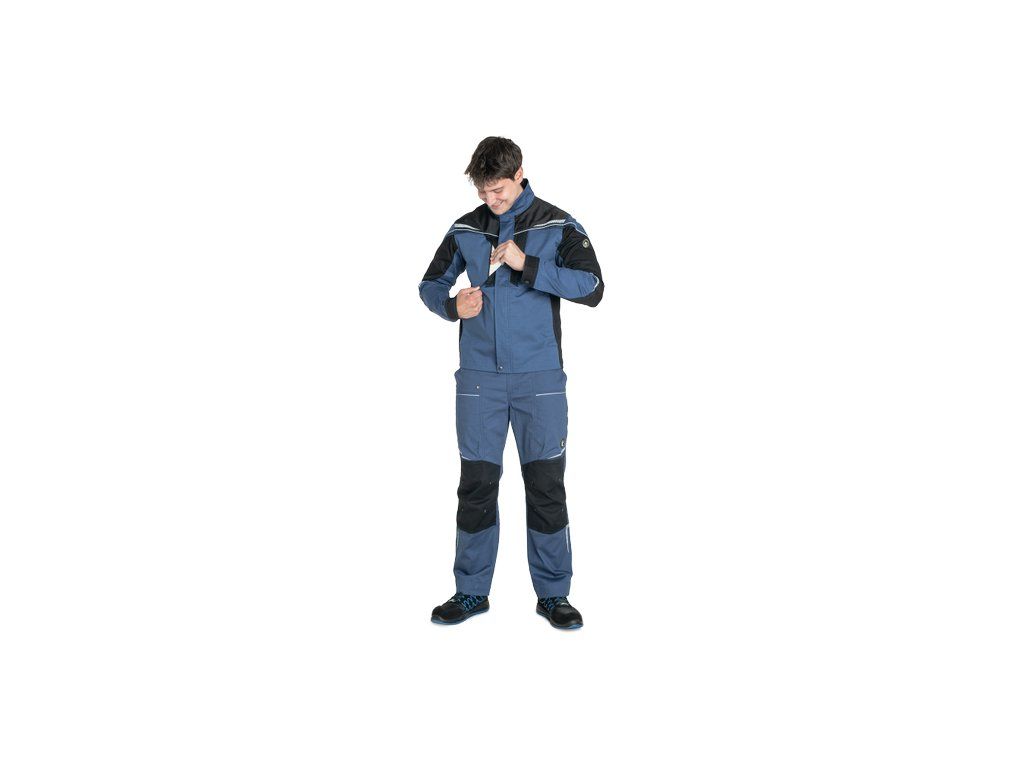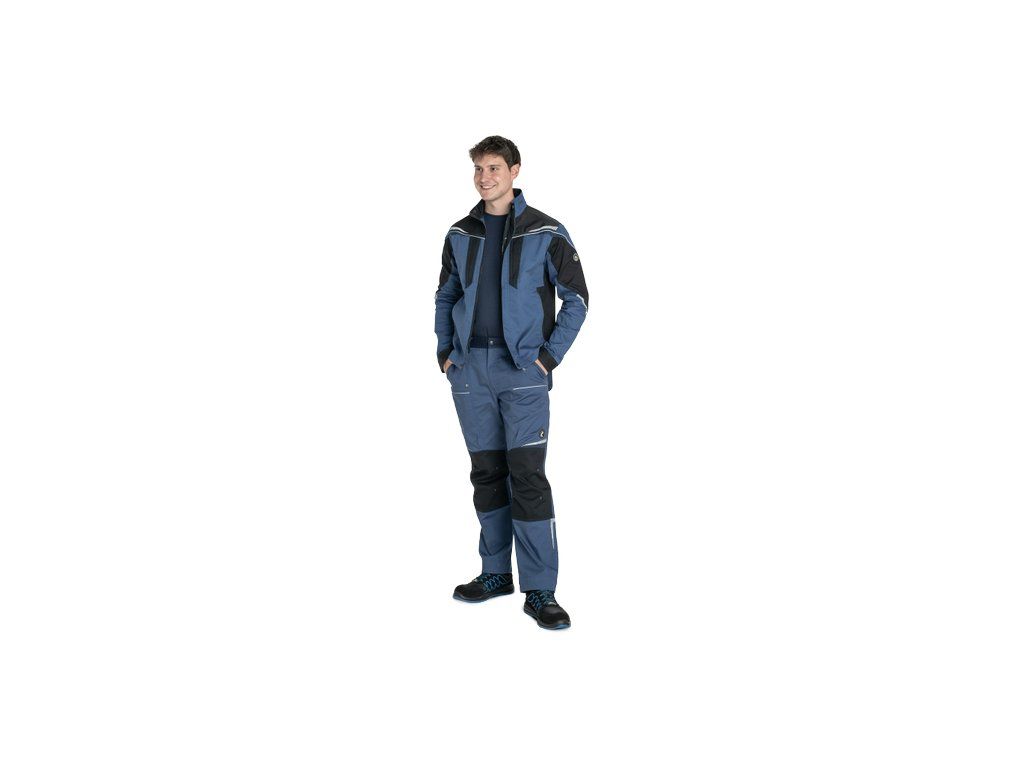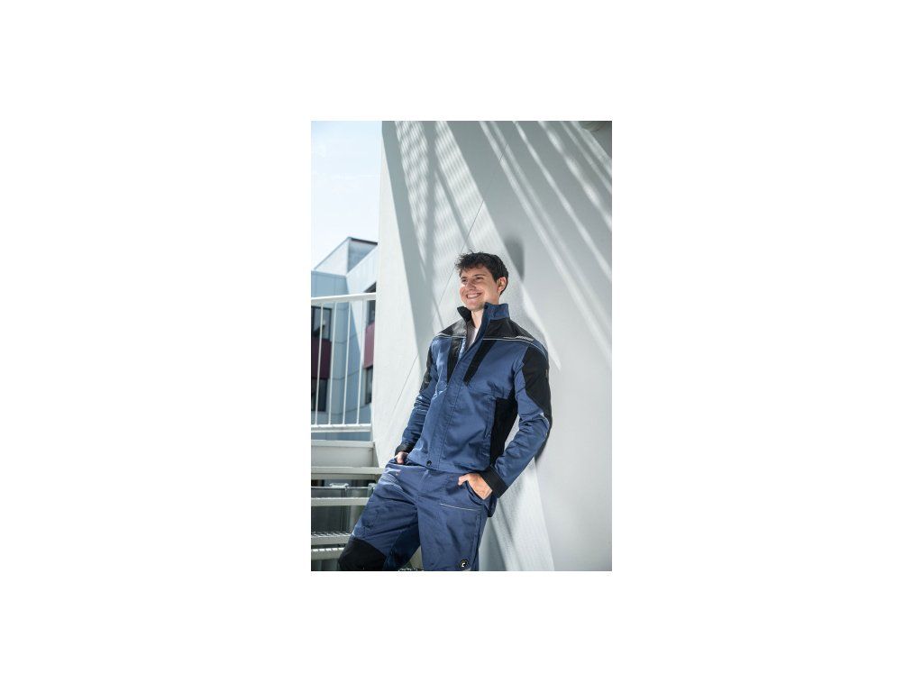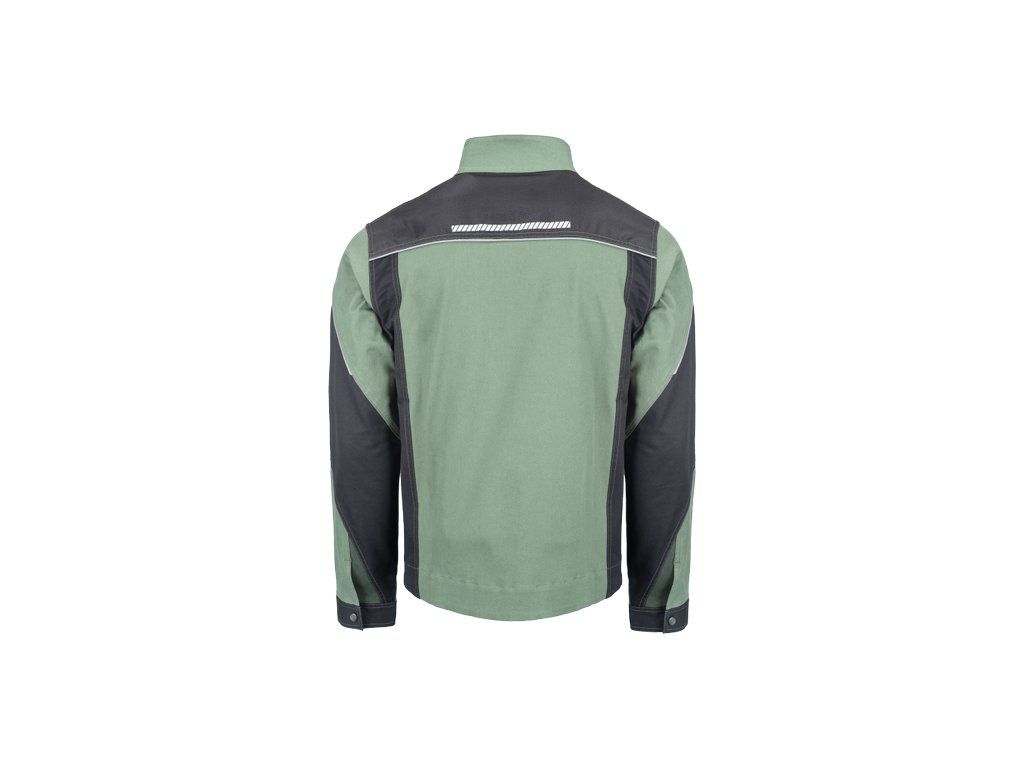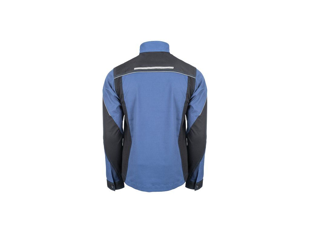 • pánská pracovní bunda se zapínáním na zip • vyrobena ze strečové tkaniny • 2 boční kapsy, 2 náprsní kapsy na zip • vyztužení namáhaných částí • reflexní lemování a tištěné reflexní detaily