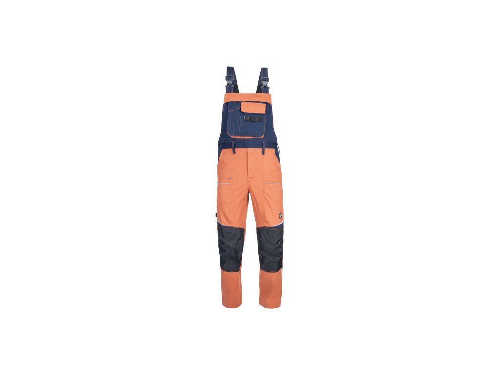 • pánské pracovní laclové kalhoty ze strečové tkaniny • pružný pas s poutky na opasek • 2 přední kapsy, 2 zadní kapsy • 2 stehenní ventilační mesh kapsy na zip • 1 multifunkční kapsa na pravém stehně • 1 multifunkční náprsní kapsa • zesílené kolenní části pro vložení kolenních chráničů • reflexní lemování a tištěné reflexní detaily • nohavice prodloužitelné o 5 cm