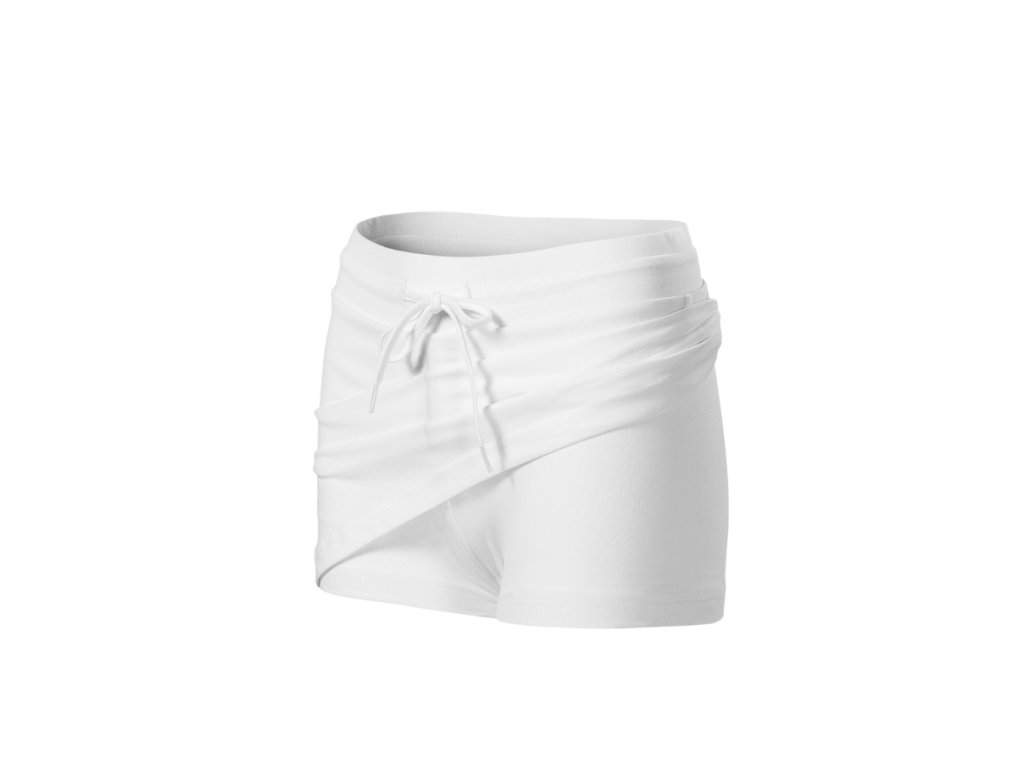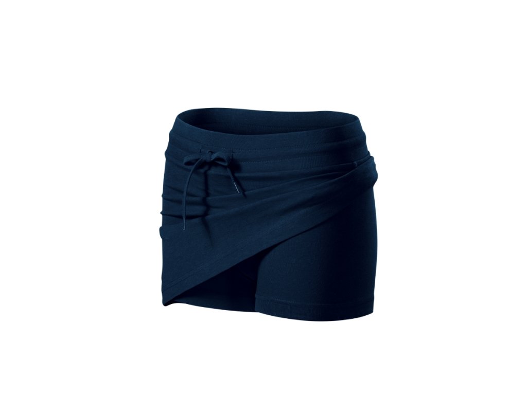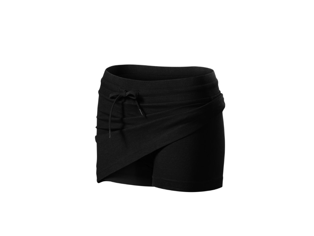 2 v 1 - sukně a všité kraťasy, strečový materiál udržující stálost tvaru, ideální pro sport a pohybové aktivity, krátký střih ve tvaru "A", široký pasový límec s pruženkou, na stažení šňůrkou