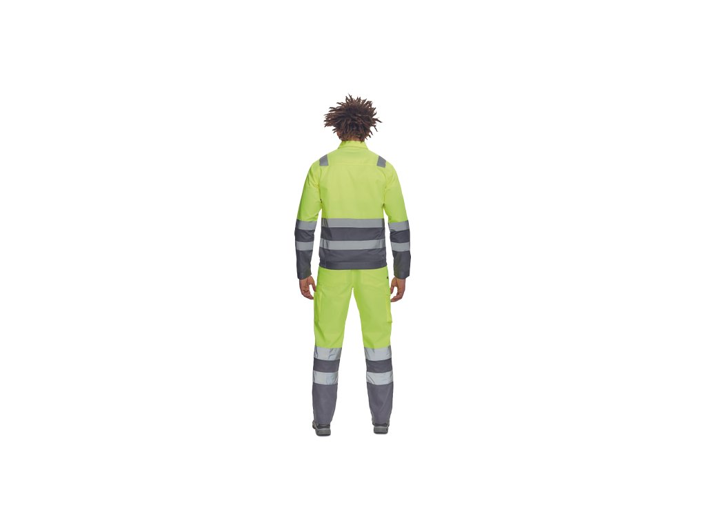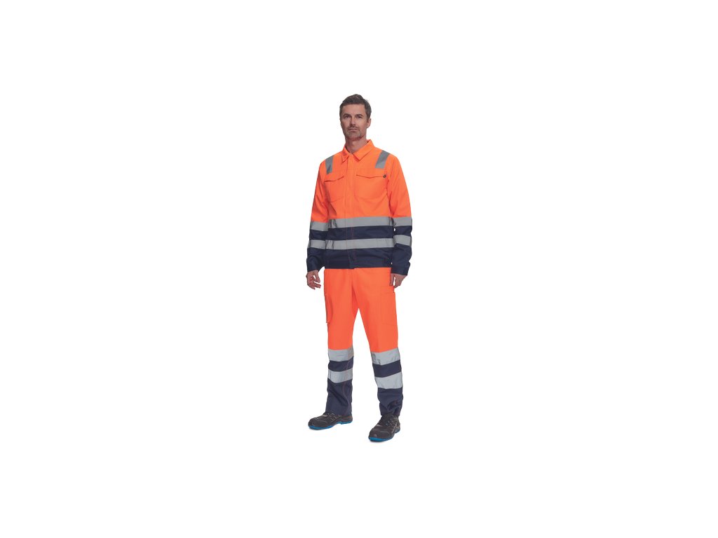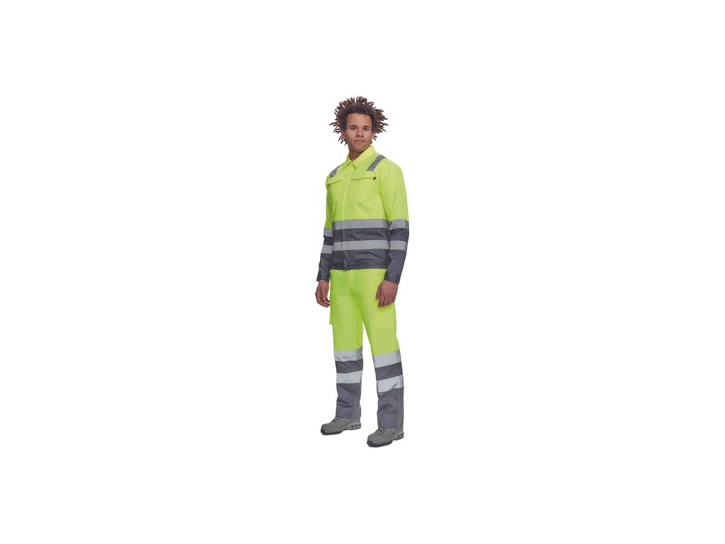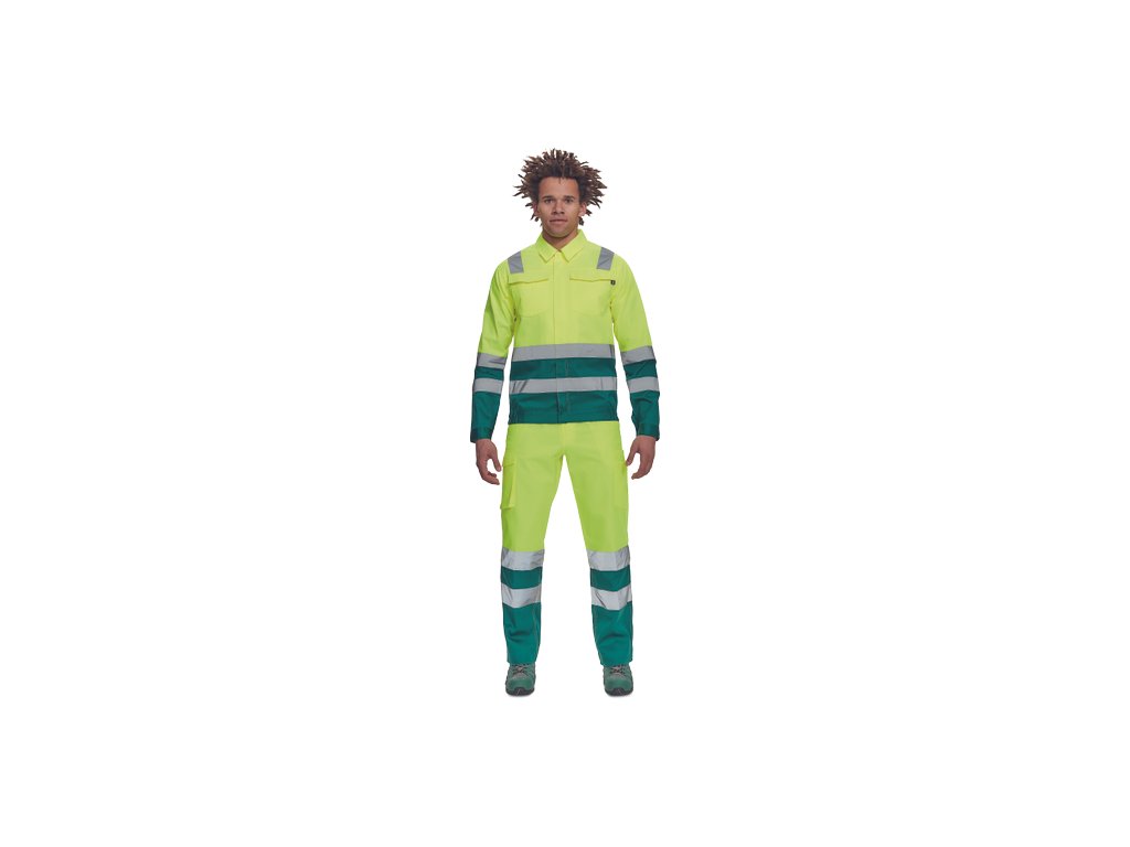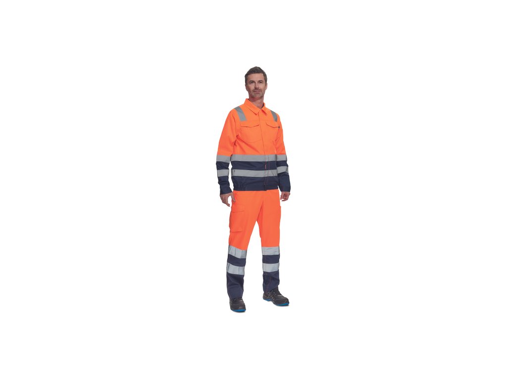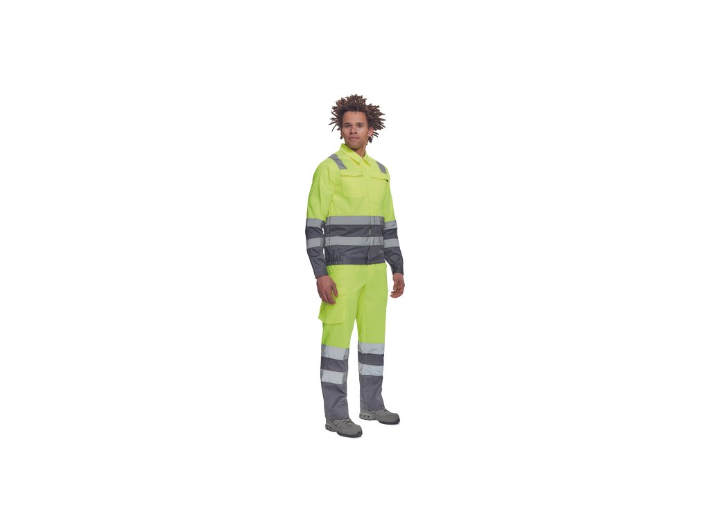 • pánská lehká HI-VIS pracovní bunda s reflexními pruhy přes ramena, v bocích a na rukávech • zapínání na zip kryté légou na suchý zip • 2 náprsní kapsy s klopou • elastický lem v bocích • nastavitelná šířka rukávů pomocí suchého zipu