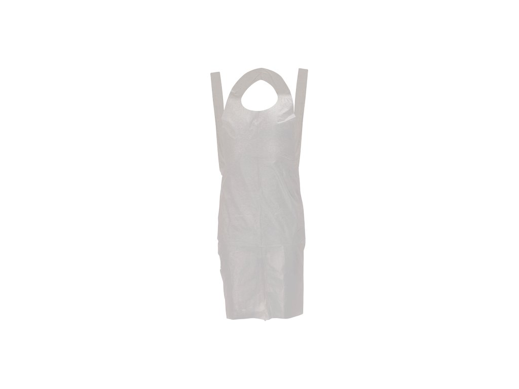 • jednorázová zástěra s laclem • síla materiálu 0.018 mm • délka 130 cm, šířka 71 cm