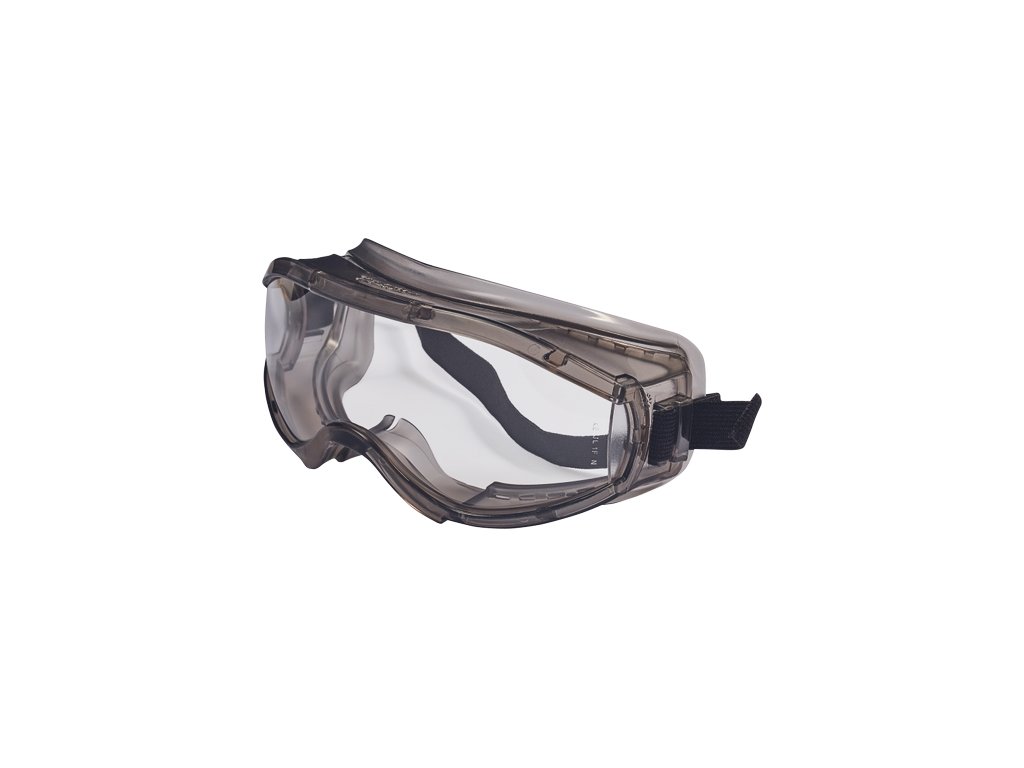 ochranné, nepřímo větrané brýle s nemlživou úpravou a tvrzeným zorníkem tř. 1F N; zorné pole 150°; brýle: F
