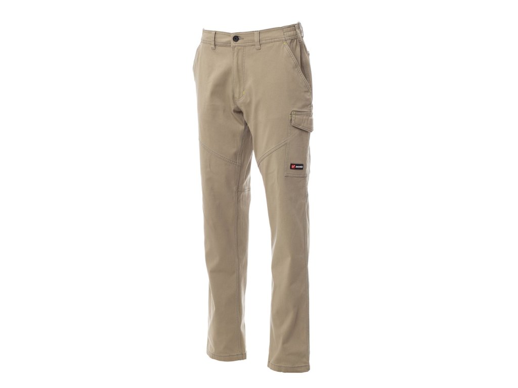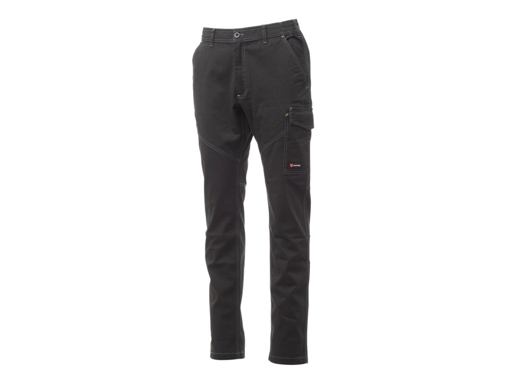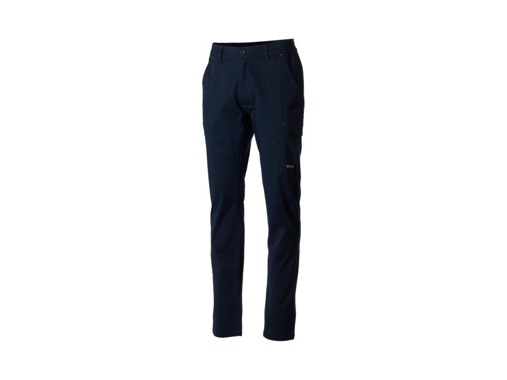 Unisexové kalhoty, stretch, celoroční, elastické pásky na bocích a poutka v pase, zapínání na zip a plastový knoflík, dvě přední kapsy klasického střihu, jedna postranní kapsa LOCK SYSTEM, jedna kapsa na svinovací metr, dvě zadní kapsy, z nichž jedna otevřená a druhá s klopou na suchý zip, švy v rozkroku a na vnitřní straně nohavice s trojjehlovým prošitím. Kontrastní vsadky a prošití, reflexní pruhy na zadní kapse, trojí prošití. Druk pro bílou barvu.
