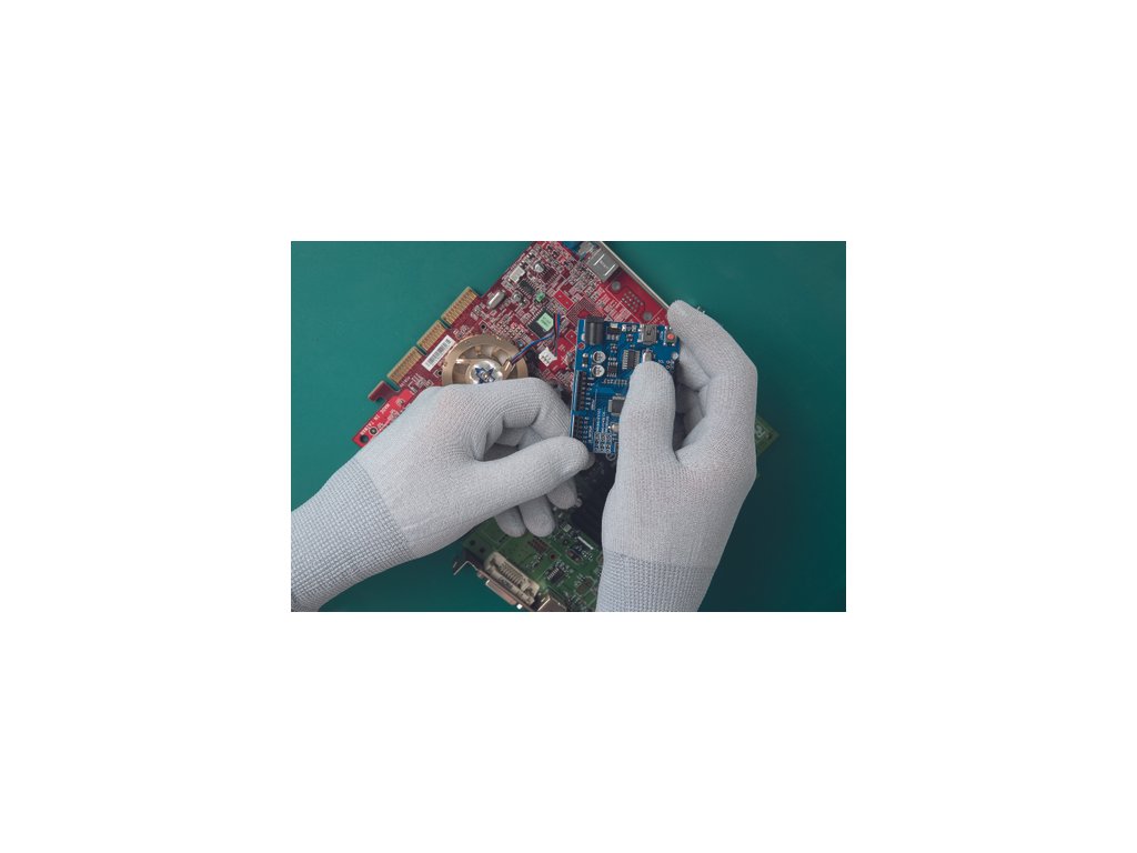 • pletené bezešvé ESD nylonové rukavice, s karbonovými vlákny • elastická manžeta